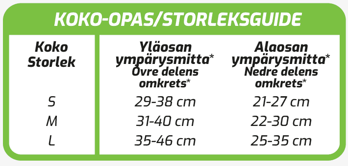 Varmista oikea kokosi tuotekuvan alla olevasta kokotaulukosta.